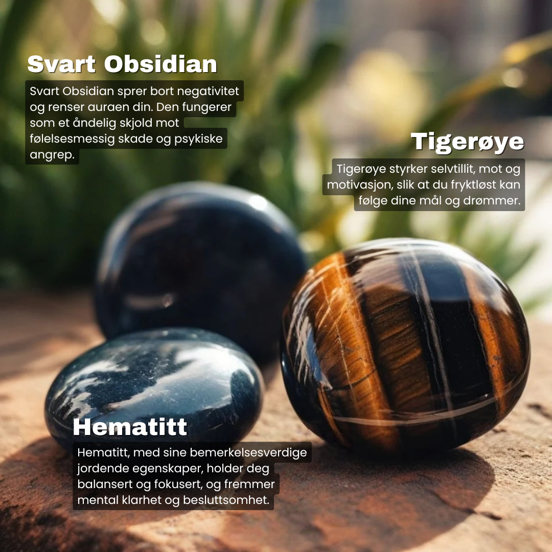 Oppdag vårt mest kraftfulle beskyttelsesarmbånd, der tre av naturens sterkeste steiner forenes for å gi deg ekstra styrke og beskyttelse i hverdagen.